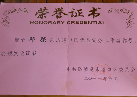 防城港市创先争优优秀共产党员
