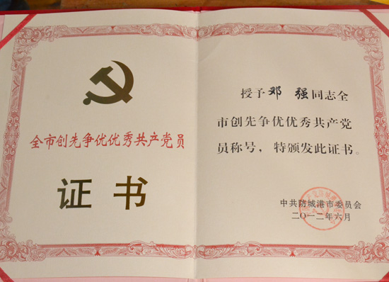 防城港市创先争优优秀共产党员