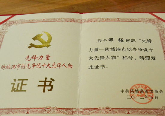 防城港市创先争优十大先锋人物